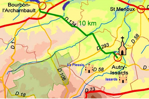 Dans un environnement bocager particulièrement bien conservé, le village d'Autry-Issards est dominé par sa superbe église romane du XIIe siècle dont la haute flèche octogonale de pierre caractérise bien l'architecture religieuse en Bourbonnais. Les châteaux médiévaux du Plessis et d'Issards hérissent leurs tours au-dessus des bois et prairies bien fermés par de solides haies vives, milieu verdoyant paisiblement irrigué par l'Ours et la Rose qui le grossit après avoir alimenté un ravissant plan d'eau qui fait le bonheur des pêcheurs. Paradis des randonneurs et des cavaliers grâce aux efforts de l'association des Chemins d'Issards, Autry est également un laboratoire de restauration du patrimoine, grâce aux efforts d'un couple néerlandais qui relèvent courageusement de la ruine l'ancien prieuré Saint-Maurice. Ici, le fleurissement est affaire de toute la population, qui a ressorti les vieux vélos pour mettre les massifs en valeur...