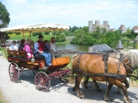 La capacité de la calèche est de dix adultes et deux enfants. Réservations obligatoires avant le jeudi 11 heures à loffice de tourisme, place de lHôtel-de-Ville. Tarif : 8,50 (4 moins de 10 ans).